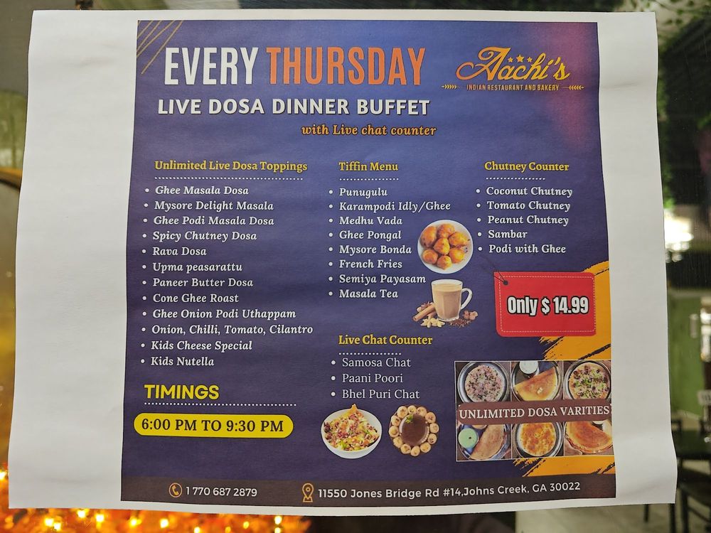 The restaurant's commitment to customer satisfaction is evident through its array of utilities, including delivery, takeout, and catering options. With a welcoming ambiance and friendly staff, Aachi's is the perfect spot for lunch, dinner, or even working remotely. The outdoor seating, free Wi-Fi, and TV add to the overall dining experience, making it a great choice for families, groups, and individuals alike. Don't miss out on trying their signature drinks like Madras Filter Coffee and Mango Lassi to complete your meal at Aachi's.