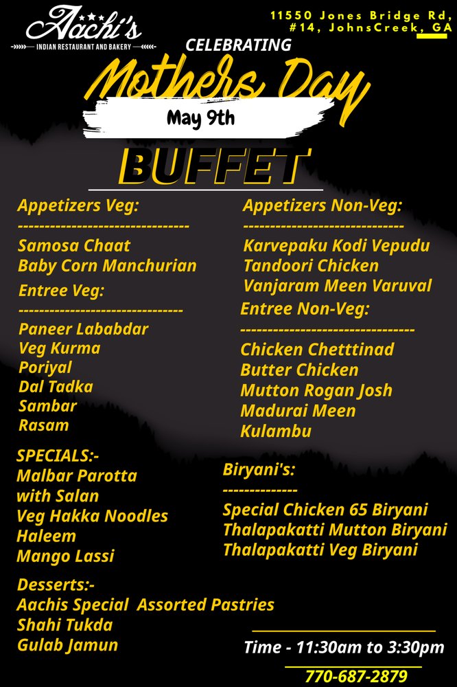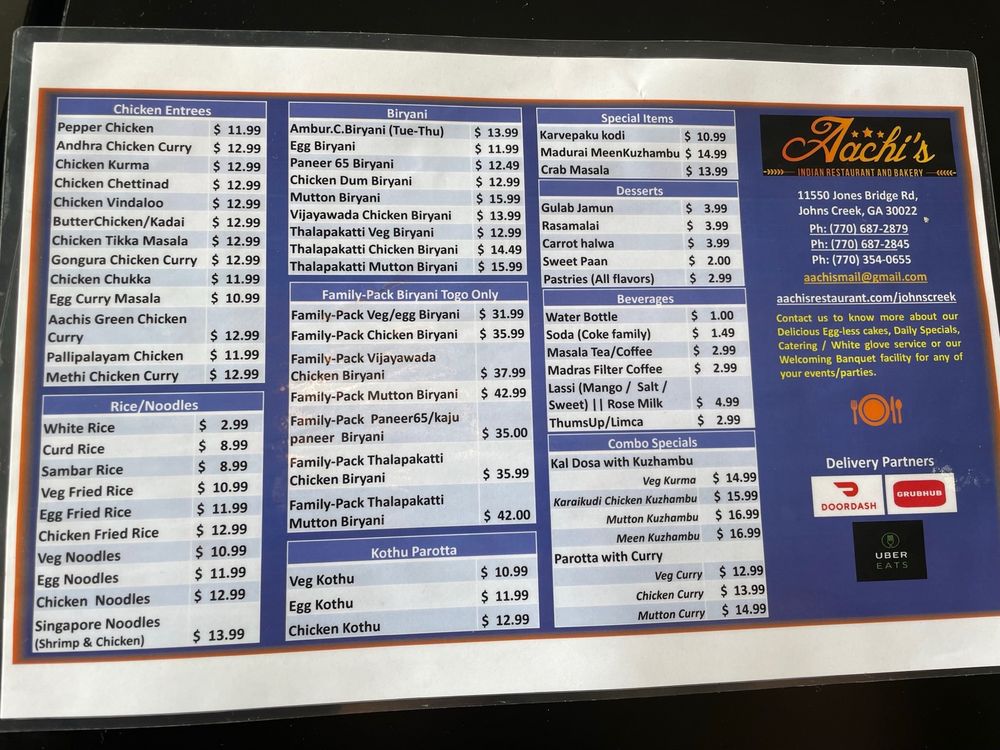 Aachi's Indian Restaurant & Bakery is a versatile eatery located in Alpharetta, Georgia, offering a mix of bakery items, Indian cuisine, and coffee & tea. Known for its diverse menu, Aachi's caters to various dietary preferences with a range of vegetarian appetizers and entrees. From classic dishes like Vegetable Samosa and Paneer Tikka Sizzler to innovative options like Gobi Manchurian and Chole Bhatura, each dish is packed with authentic Indian flavors.
